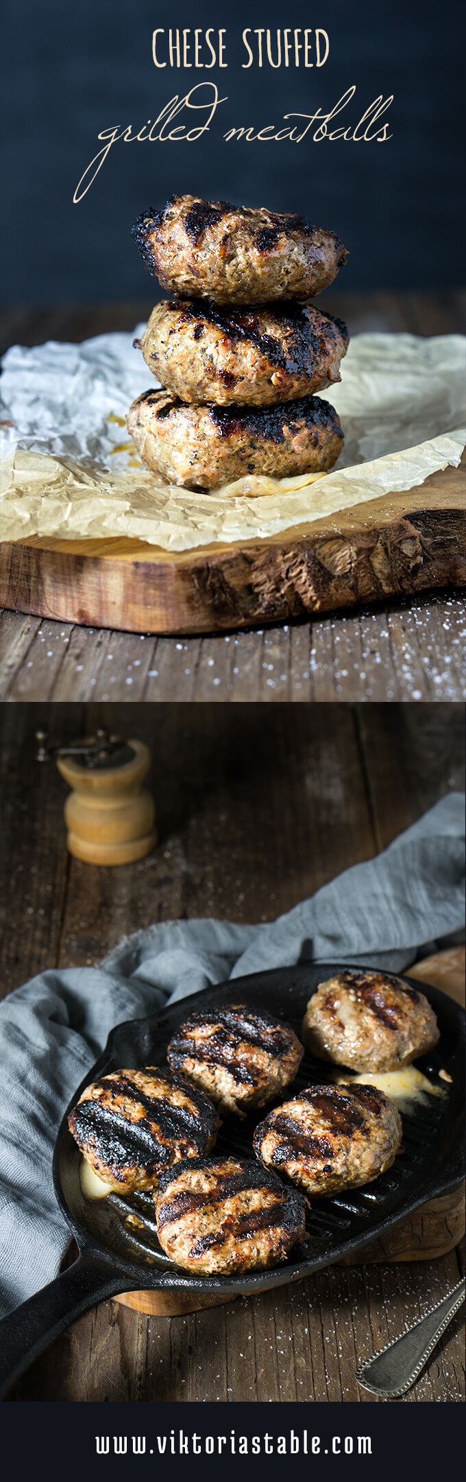As for the cheese – you can use regular Mozzarella, but I like the smoked one here best. Serve the grilled meatballs with a nice salad, or to keep with the tradition, serve with a dollop of this roasted sweet pepper jam, or this eggplant dip.