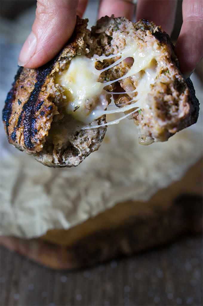 Cheese stuffed meatballs – juicy, flavorful, and oozing with smokey melted cheese! Try replacing your standard burger with these delicious giant meatballs next time, and you will never look back!