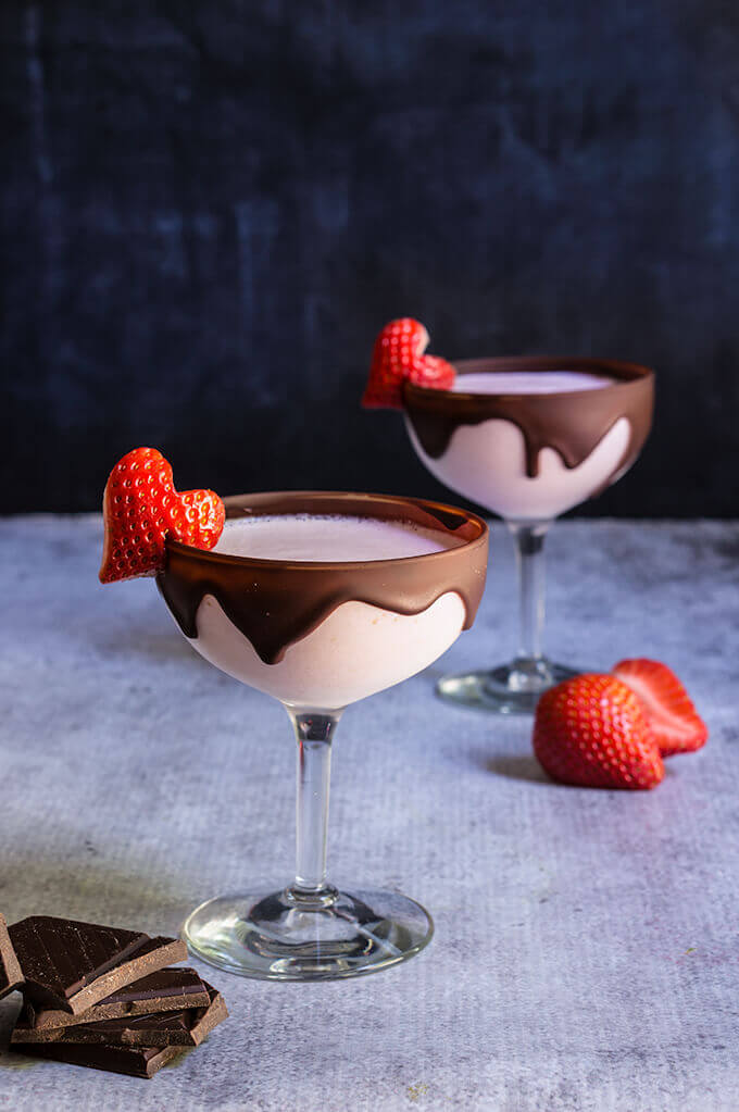 This Valentine’s day, may I suggest something a little more fun, and flirty, yet with the same amazing taste, like this chocolate strawberry martini? In this impressive cocktail, the classic pair is further ‘enhanced’ with some Wild strawberry vodka, White creme de cacao liqueur, and vanilla ice cream! It is absolutely delicious, and served in chocolate-dipped glasses, it makes for a killer presentation. Be warned though, it goes down dangerously fast!