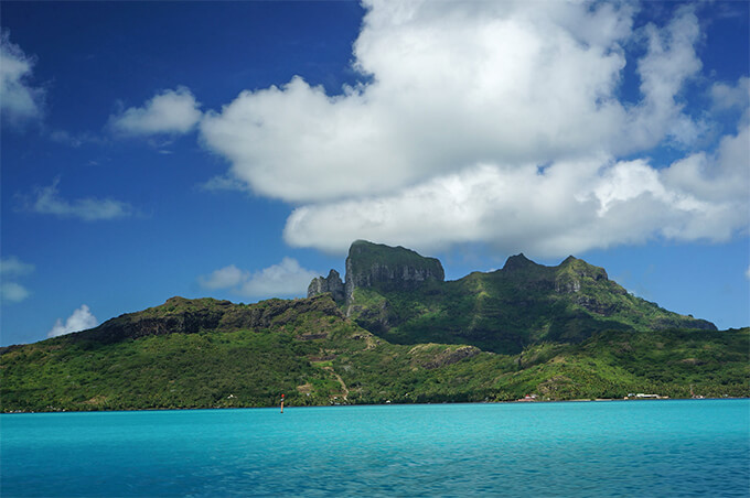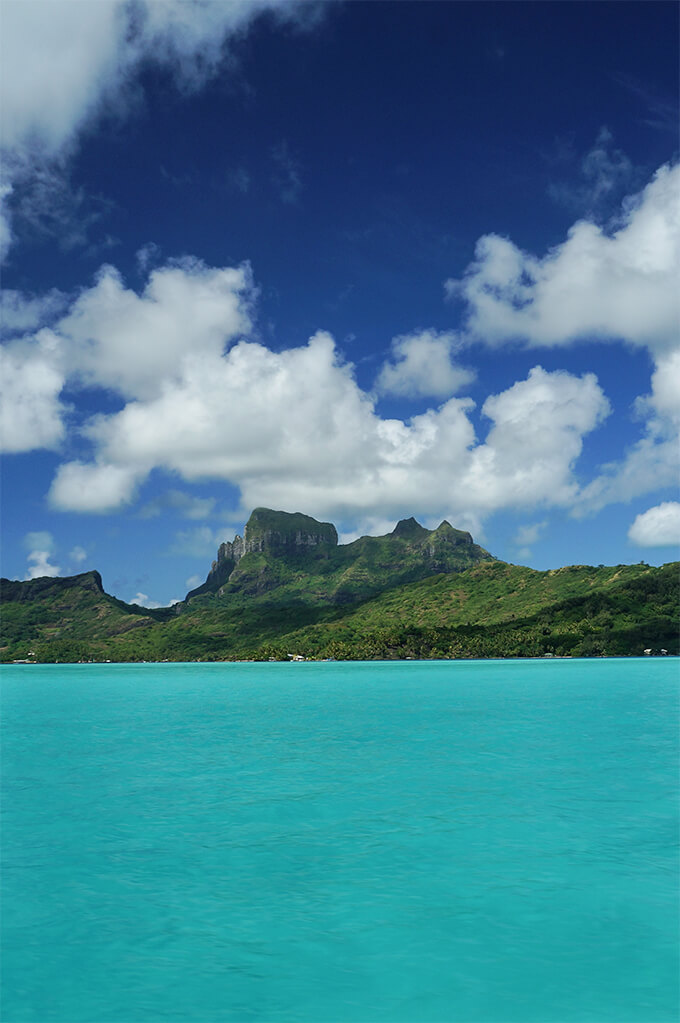 Just when we thought we’ve seen it all, there was Bora Bora. It took our breath away. The dramatic silhouette of Mount Otemanu, rising 2400 feet above the water, with its rugged vertical peaks was at stark contrast to the neon-colored calm water of the lagoon. We were speechless and humbled, and the only thing we could do was shooting picture after picture, capturing the same scene over and over again, like maniacs. It really didn’t make sense at all, except that it felt so good (we would later curse ourselves when we had to comb through thousands of pictures, most of which were pretty much the same, and select the best). The intensity of the colors was unreal – the water changed from turquoise, to neon to Turkish blue in seconds sometimes and we couldn’t even capture that on camera.