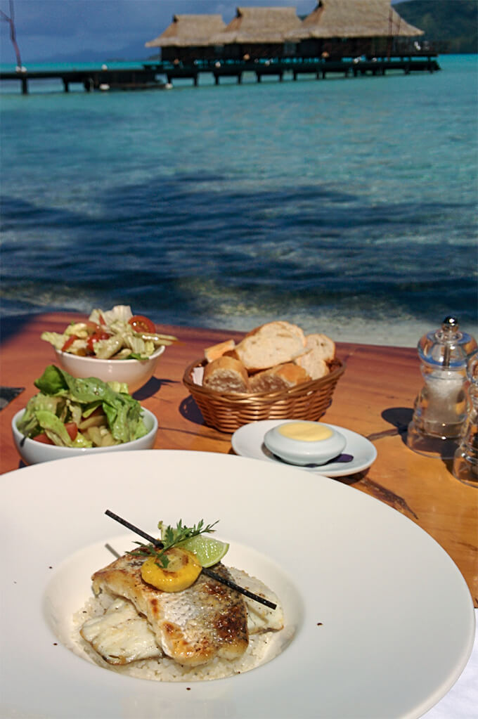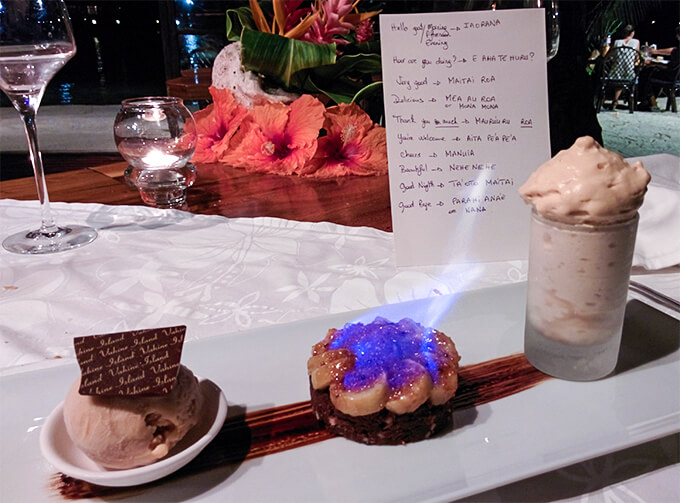 After a full day of activities, it was time for dinner. We didn’t know it that first day, but it was soon to become one of our most favorite activities of the day. Dinner at Vahine Island was really special – it was intimate, it was romantic, it was insanely delicious, and it felt like a ritual – from the candle lights and flowers, the discreet music in the background, the lovely servers and the food – oh God, the food! Every single course was a masterpiece – from presentation to taste. We’ve never had such sophisticated, exquisite and delicious food before! I think it spoiled us for life 🙂 Everywhere else we went after, we always compared the food with Vahine, and nothing could top that.