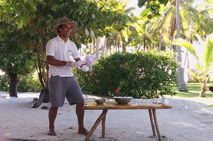 Vahine island private resort was a piece of paradise – it wasn’t like any other place we’ve stayed at. What made it so special was the unique combination of boutique luxury, personal attention and superb food on the one hand, and truly back-to-nature and local cultural experiences on the other. It didn’t have the feel of a resort because it was so small and private. You almost felt like you were all alone on the island, but you knew that the invisible staff are all around you, ready to grant your wishes at any time. It was beautiful and cozy, without the stiff luxury of a big resort.